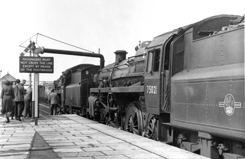 Taking water; 75020 leading 75021 at Barmouth (photo: Peter Kirby)